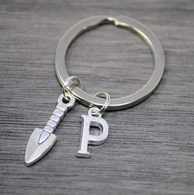 The trowel keyring / keychain can be personalised by selecting the initial letter charm required from the drop-down list.