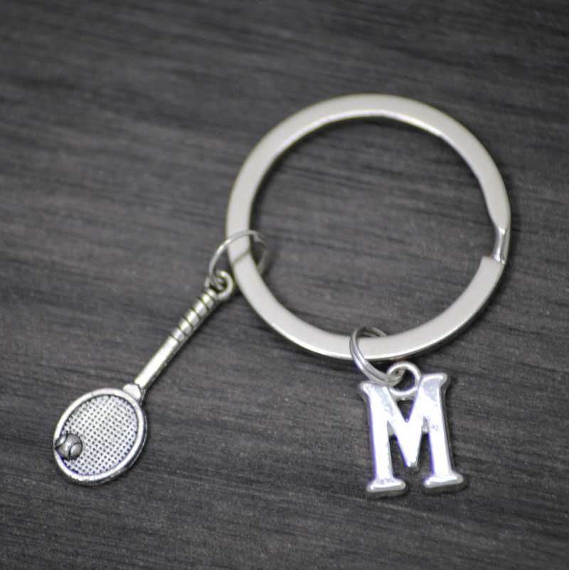 The tennis keyring can be personalised by selecting the initial letter charm required from the drop-down list.